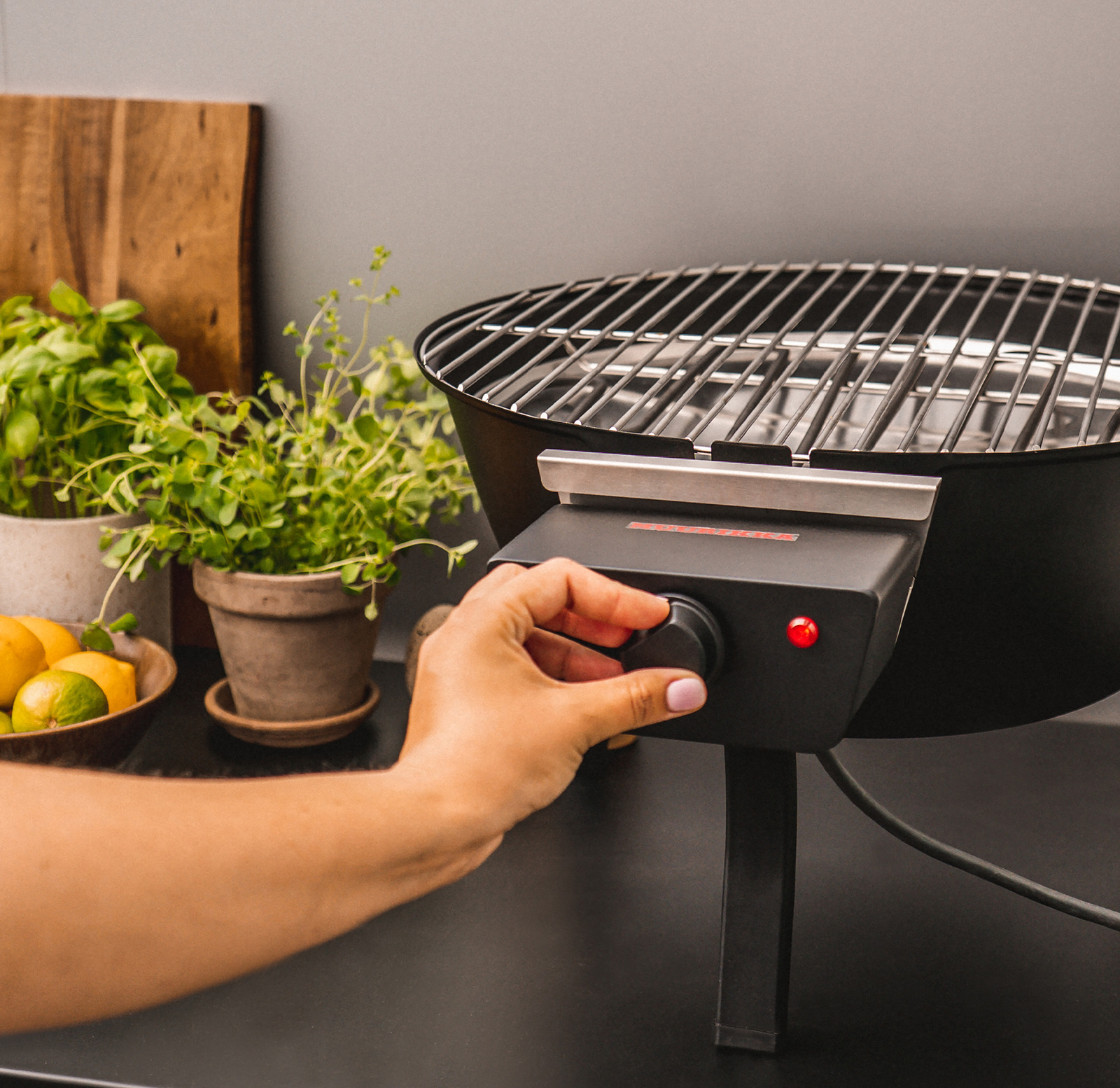 Elgrill 48 SL är en kompakt bordsmodell som ger klassisk grillkänsla oavsett var du befinner dig. Grillen värms snabbt upp till hög och jämn temperatur och har en generös grillyta på 48 cm. Med vred och steglös värmereglering justerar du enkelt värmen efter behov.