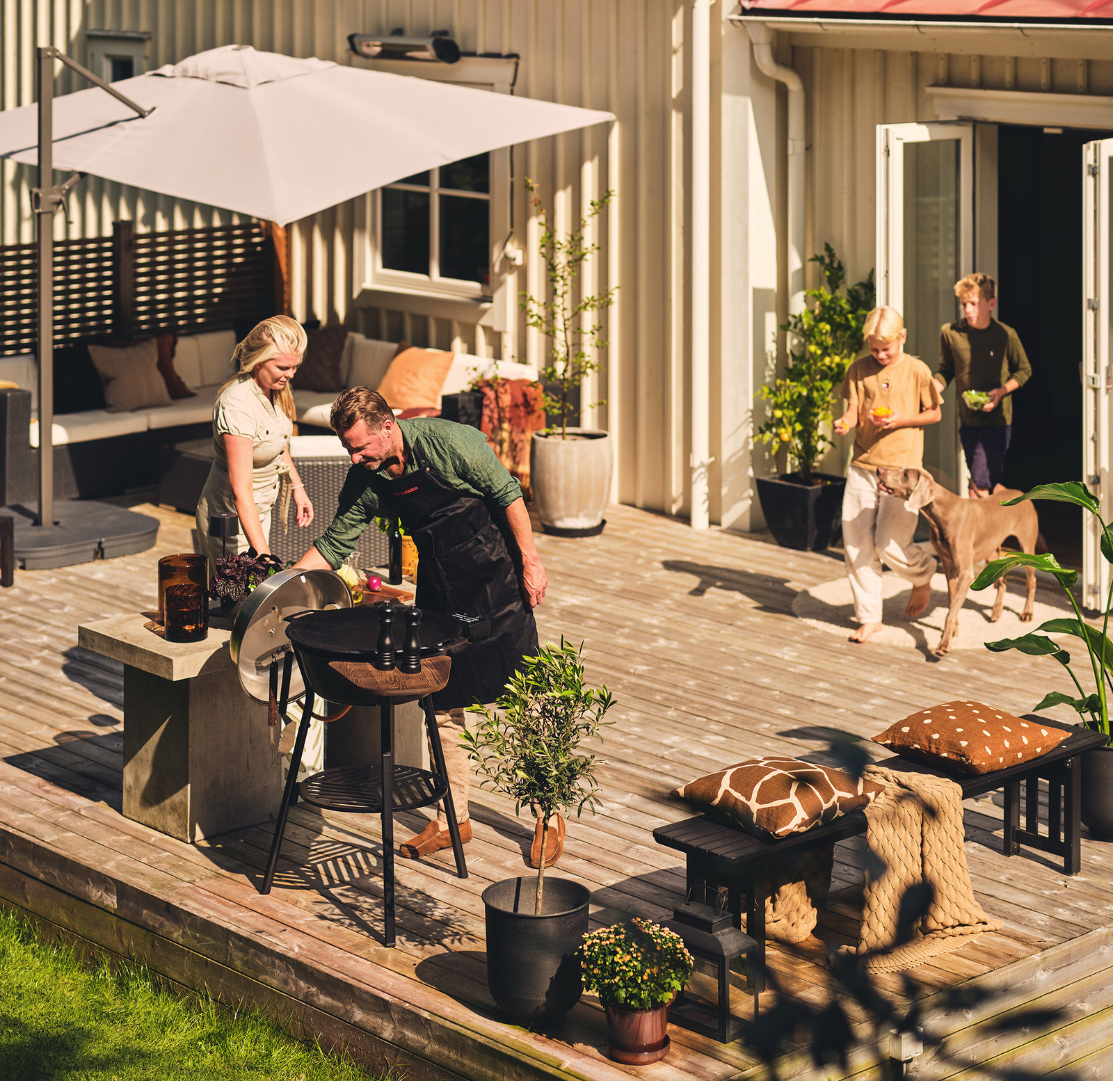 I paketet ingår även ett regulatorset, ett fällbart sidobord som ger extra arbetsyta vid ditt stekhällsset samt en redskapshållare och ett skyddsöverdrag.