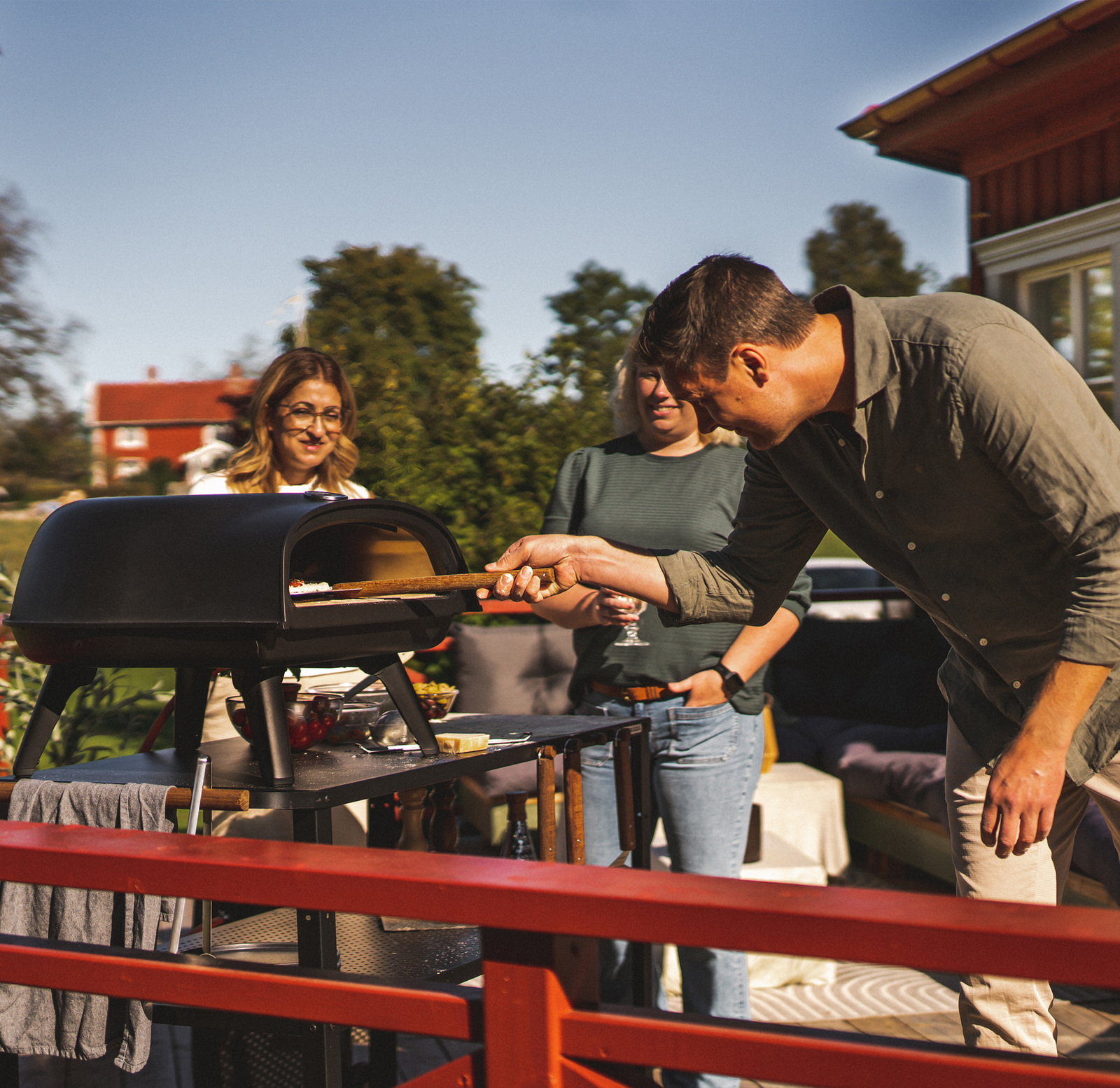 Utrustad med Muurikka UHeat-teknologi, där en U-formad brännare sprider värmen från tre håll och gör att du behöver rotera pizzan mer sällan under gräddning.